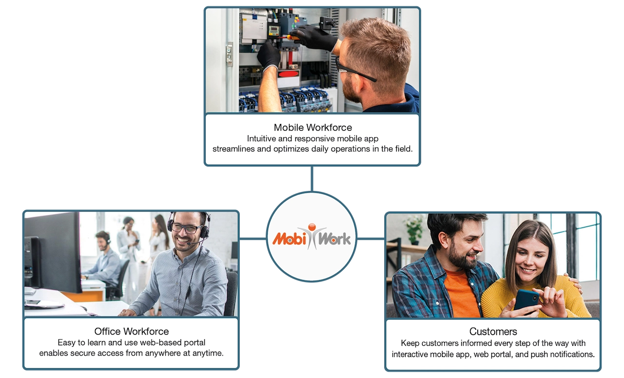 electrical services businesses that use our MobiWork HVAC services software solution experience increased productivity, cost savings, real-time visibility, powerful digital data capture to invoice accurately and get paid faster, improved customer engagement and satisfaction.